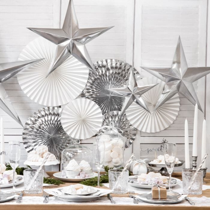 Добавете блясък и елегантност към вашето празненство с тези стилни сребърни чинии във форма на звезда! Подходящи за всякакви поводи – от рождени дни и тематични партита до Коледа, Нова година и зимни празненства, те са чудесен начин да направите масата още по-впечатляваща.