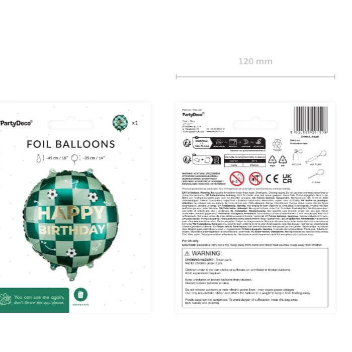 Отпразнувайте рождения ден на истинския спортен фен с този забавен и ефектен фолиев балон Happy Birthday с футболни топки! Дизайнът го прави идеален за детски и тийнейджърски рождени дни, спортни партита, клубни тържества, училищни събития или като акцент във фотозона.