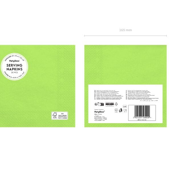 Добавете свеж и нежен акцент към вашата празнична маса с тези двупластови хартиени  светлозелени салфетки. Те са идеални за бебешко парти, кръщене, първи рожден ден, както и за сватба, фирмени и официални събития. Зеленият цвят внася усещане за елегантност, спокойствие и стил, а висококачествената хартия осигурява удобство при всяко хранене.