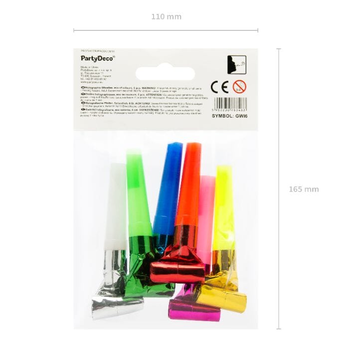 • Комплект: 6 броя парти свирки в различни ярки цветове.