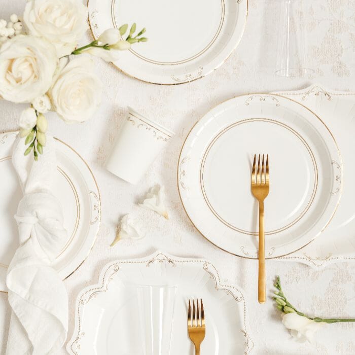 • Лесни за комбиниране: Съчетавайте с чинии, салфетки и покривки в бели или златни тонове за завършена визия на масата.