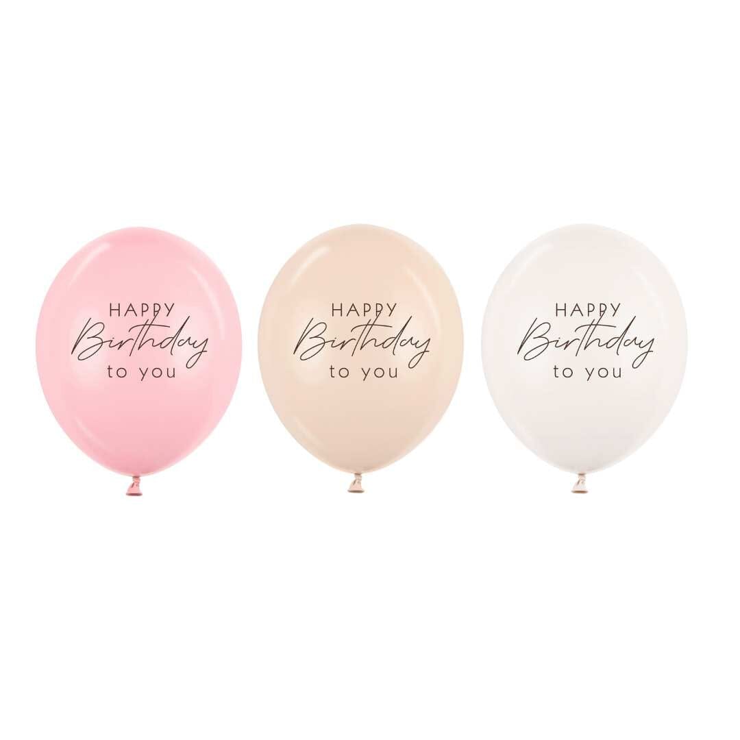 Създайте елегантна и стилна атмосфера за рожден ден с тези висококачествени латексови балони в розова гама и надпис "Happy Birthday To You". Идеални за декорация на детски партита, юбилеи, тематични празненства и фотозони.