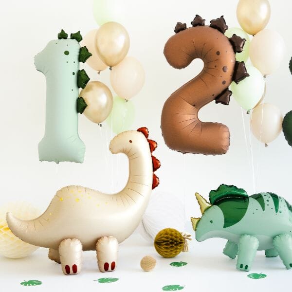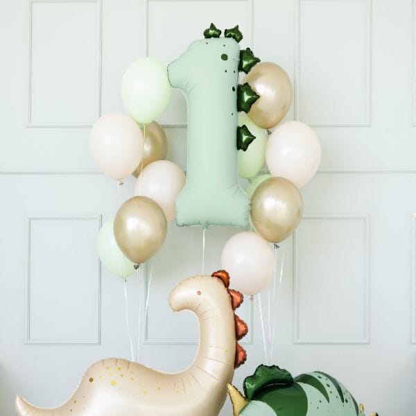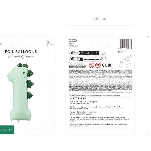 Отпразнувайте първия рожден ден на детето си по незабравим начин с този впечатляващ фолиев балон цифра 1 с динозавър! Балонът комбинира любимата детска тематика „динозаври“ с празничния символ на първата година – чудесен избор за украса на детски рожден ден, фотосесия или тематично парти.