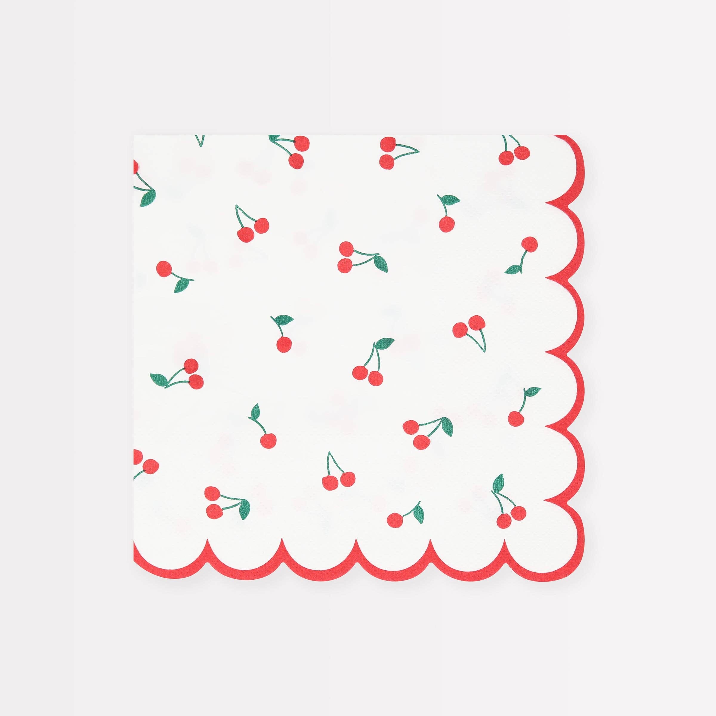 Добавете цвят и стил към вашата парти украса с черешки за рожден ден или лятно парти с тези красиви салфетки с черешки. Те са перфектното допълнение към празничната маса, съчетавайки практичност и декоративен ефект.