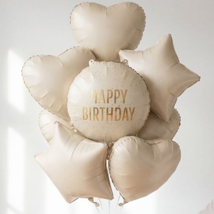 Добавете стилен и елегантен акцент към празника с този фолиев балон „Happy Birthday“ в кремав цвят. Наситеният кремав нюанс го превръщат в впечатляващ детайл към всяка украса за рожден ден – както за възрастни, така и за деца.