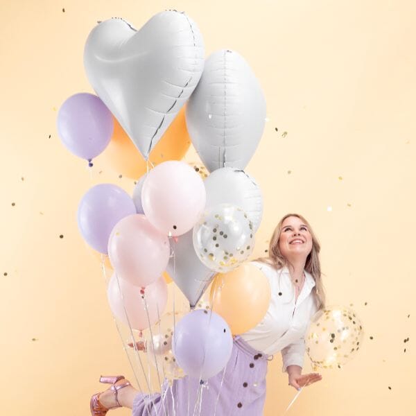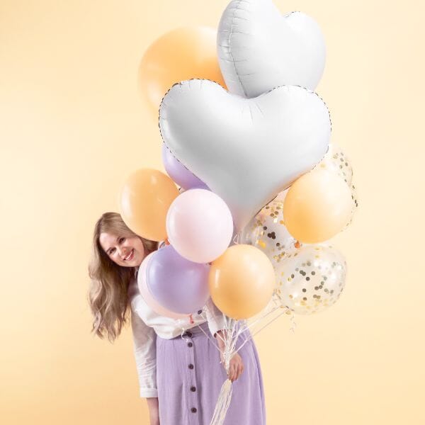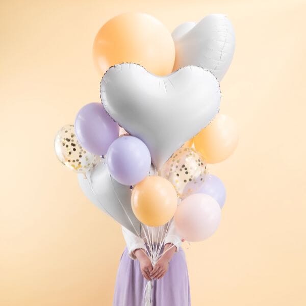 Добавете стилен и елегантен акцент към вашата украса с този изискан фолиев балон във форма на сърце! Белият нюанс придава луксозен вид, което го прави идеален за сватби, романтични вечери и специални поводи.