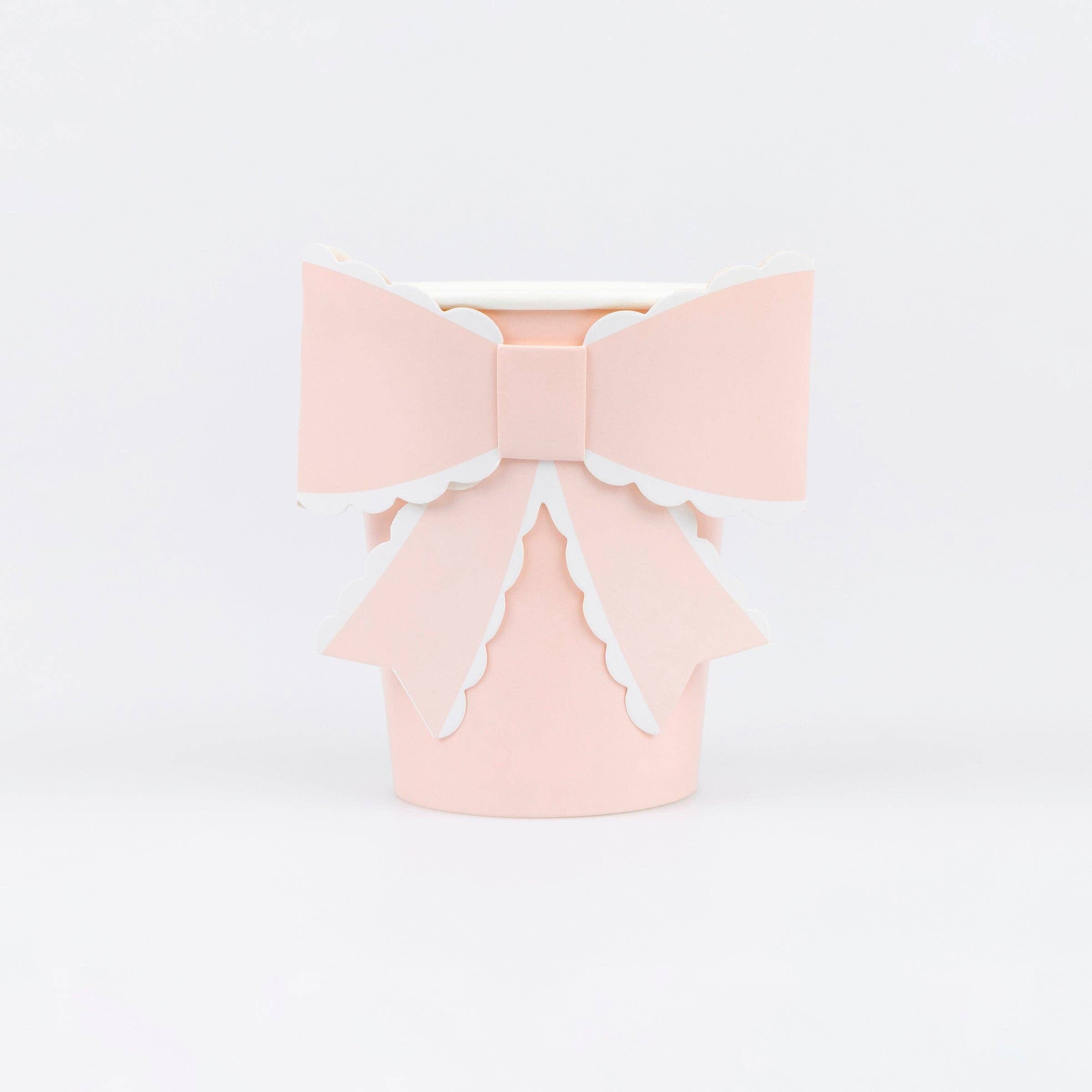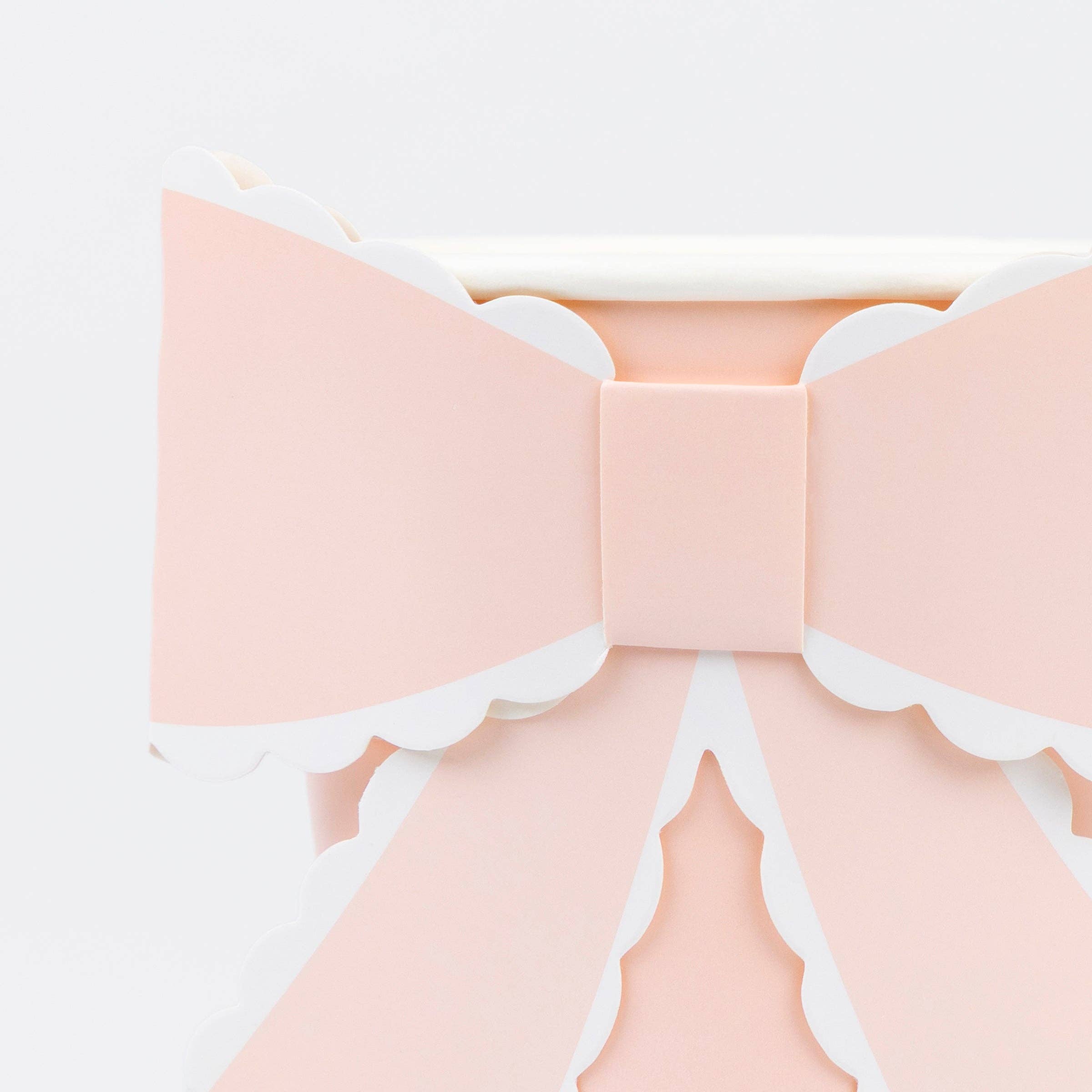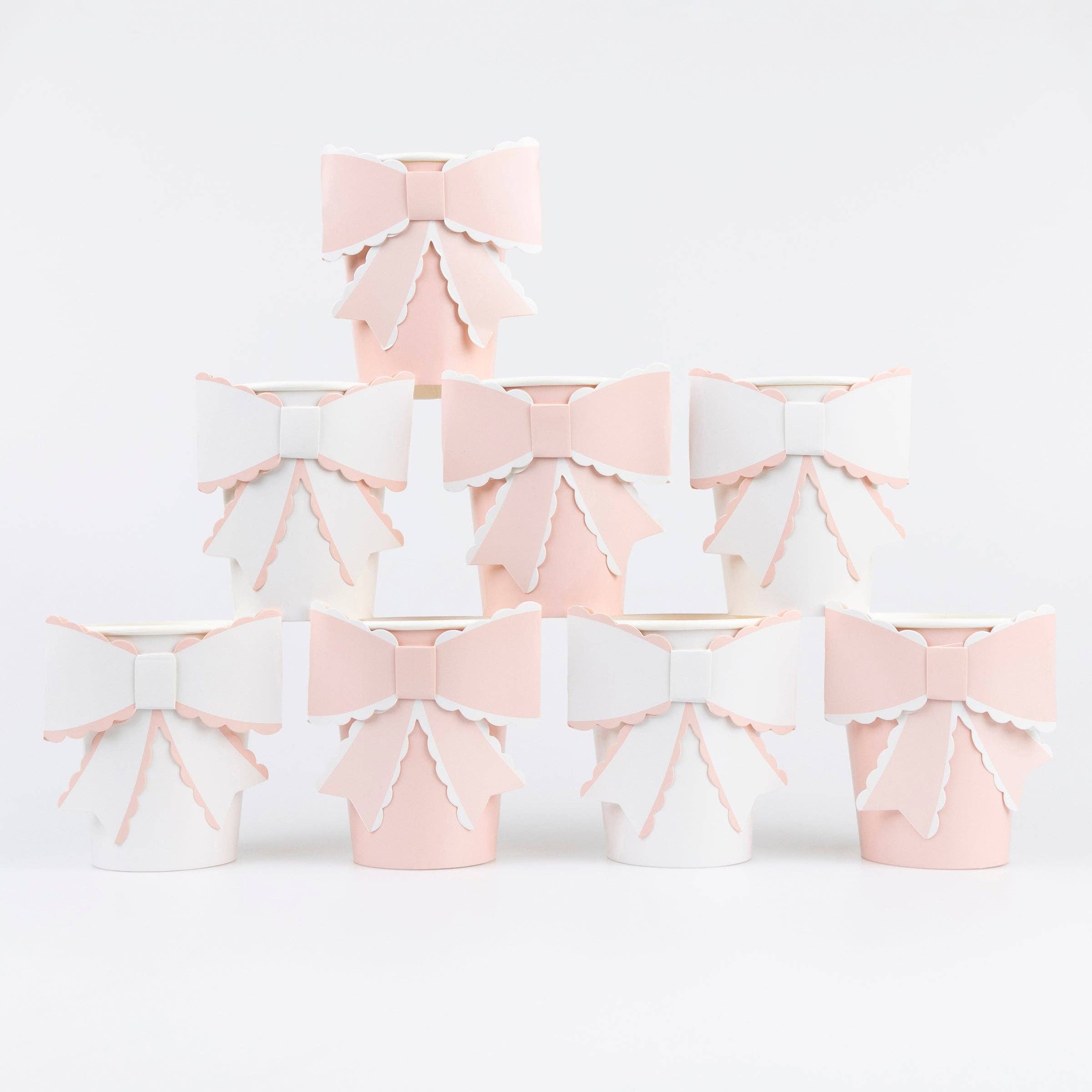 Добавете елегантност и фин стил към вашата парти украса за рожден ден, bridal shower или Свети Валентин с тези красиви хартиени чаши с панделки. Със своите нежни цветове и 3D декоративни елементи, те създават изискана и модерна визия на всяка празнична маса.