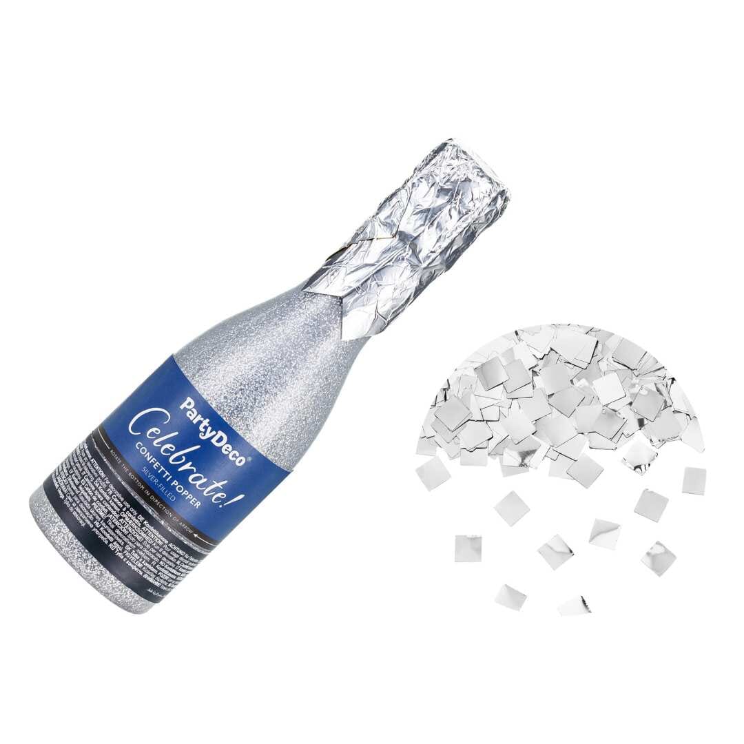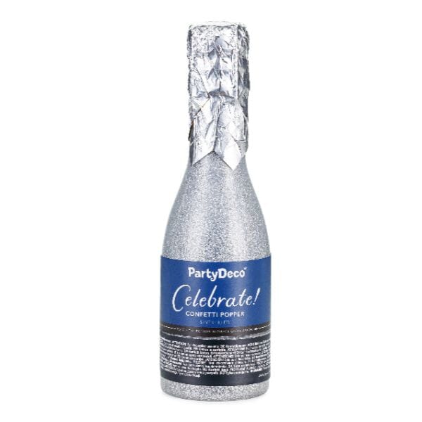 Бутилка шампанско с конфети, сребърна