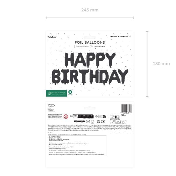 Създайте незабравима празнична атмосфера с този впечатляващ фолиев балон „Happy Birthday“ в черен цвят!  Перфектният избор за детски рожден ден, този балон ще се превърне в акцент на вашата декорация.