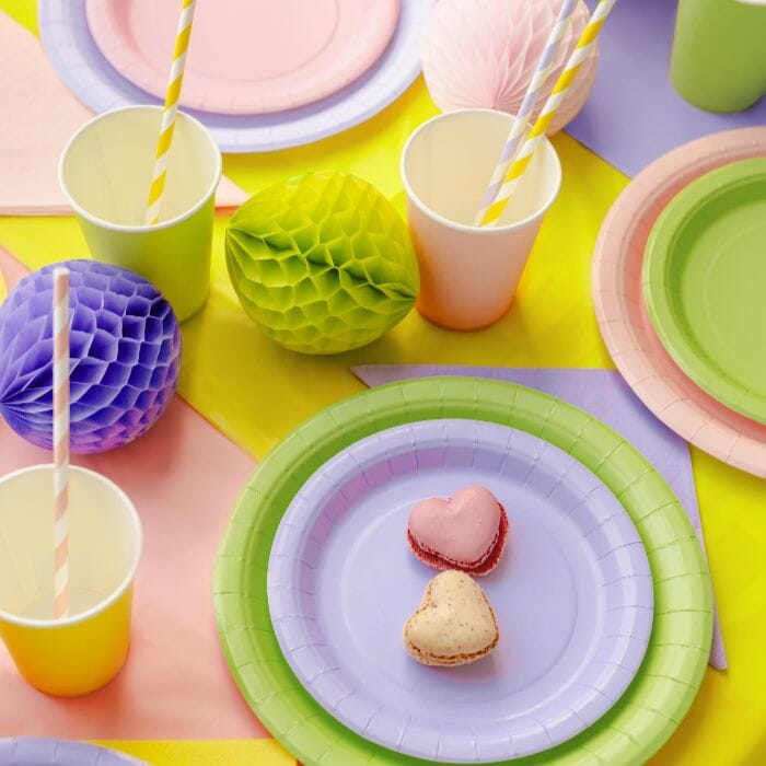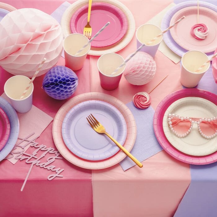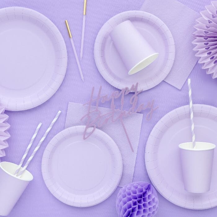 Добавете цвят и забавна атмосфера на вашата трапеза с тези лилави чинии, които са идеални за момичешко парти. Те създават елегантна и модерна визия, подходяща и за рождени дни, бебешко парти или други специални поводи.